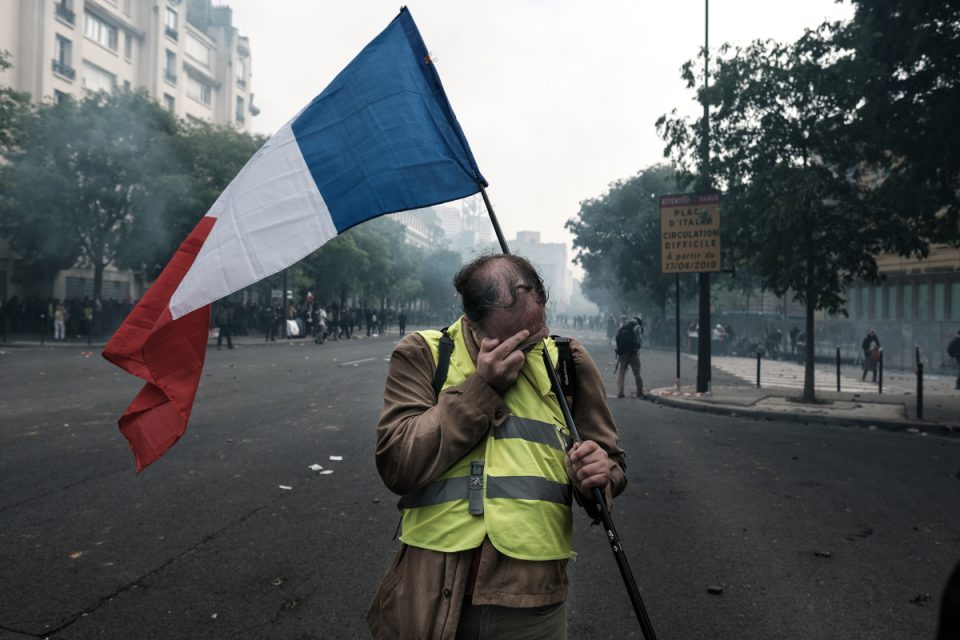 Performance artists around Romain Thibaud-Rose performing in Frankfurt’s fiancial district