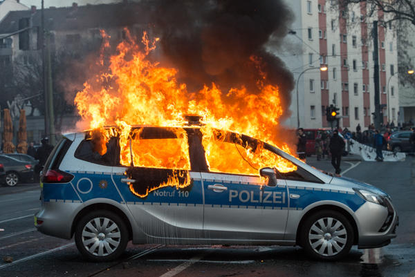 Anti-austerity protesters burn police cars and clash with riot cops at opening of European Central Bank’s new HQ