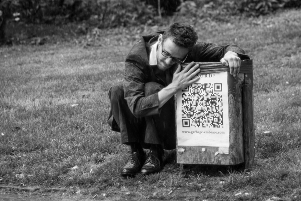 Performance artists around Romain Thibaud-Rose performing in Frankfurt’s fiancial district